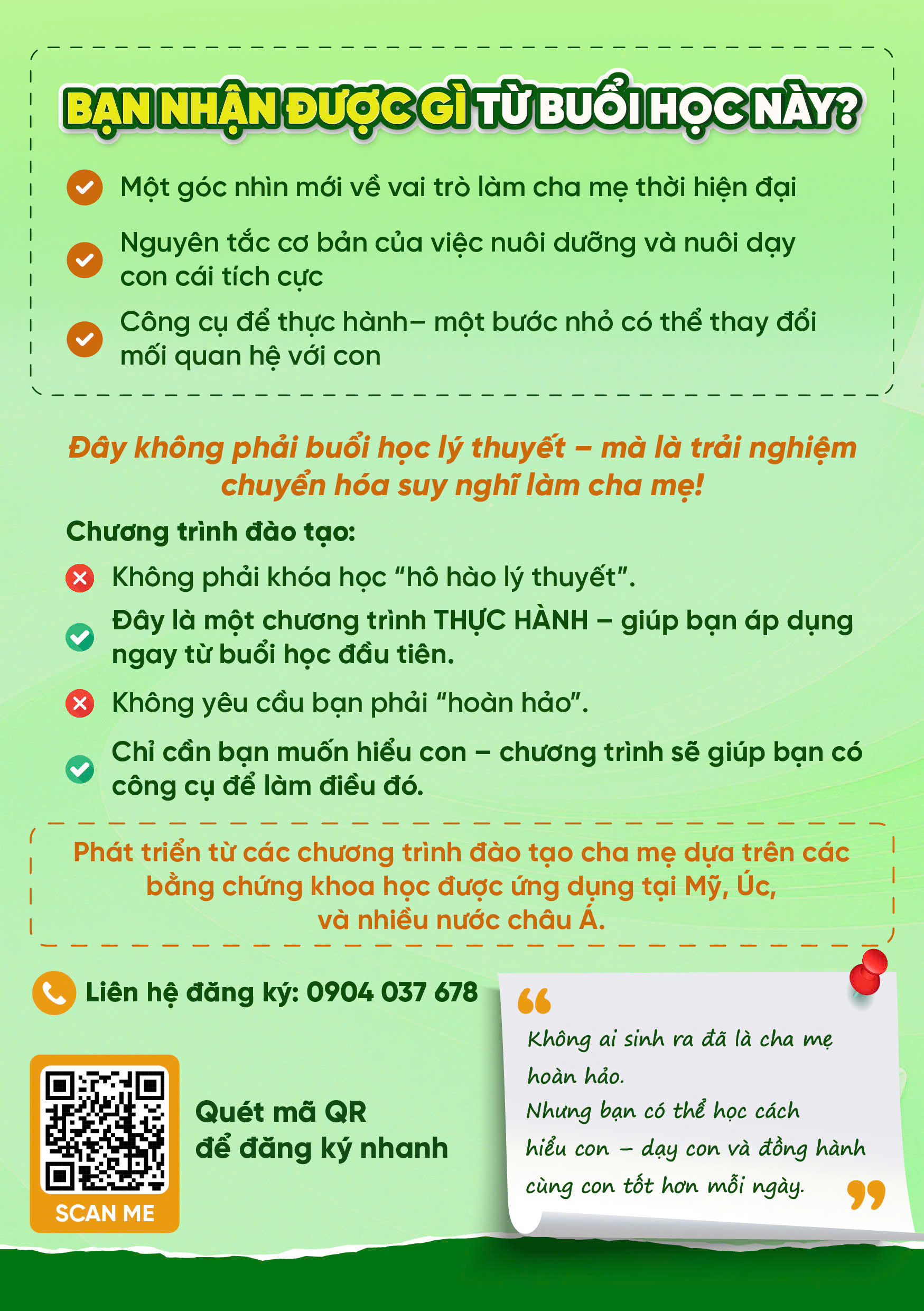 Hội thảo 90 phút này có thể thay đổi cách bạn đồng hành cùng con suốt cả chặng đường phía trước.